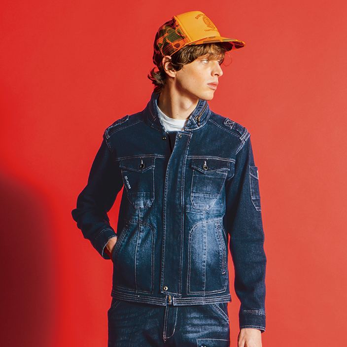 ▶納入案件も視野に入れ開発された、高いコストパフォーマンスを発揮するスタンダードモデル。シンプルなデザインながらもアイズイズムは随所に注入されています。▶ユニフォームとしての長期着用を可能とする非常にハイレベルな素材ストレッチCVCツイルを採用。綿の風合いと高い形態安定性能を両立。適度なボリューム感と重量感を併せ持ちユニフォームに欠かせない高い耐久性を発揮。同時に優れた発色性が高級感を演出します (56, 59番色は絶妙なヴィンテージ感覚を表現する片サイド染めを採用)。伸長率 (ヨコ) 約20%、伸長回復率(1時間後)約84%の適度なストレッチ性能が快適な作業をサポートします。▶デニム商品には10.3オンスのボリューム感の高いストレッチ素材を使用。伸長率(ヨコ)約56%、伸長回復率(1時間後)約95%を誇る驚異的なハイパワーストレッチ性能を有し、抜群の動きやすさを発揮すると共に、型崩れの少ない優れた形態安定性能を発揮します。▶洗練された3Dカッティングでスタイリッシュなスタイリングと動き易さを両立。▶金属ファスナー、ドット釦等は国YKK社製を使用。細部にまで品質に拘っています。