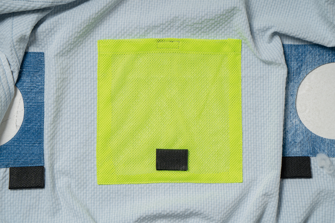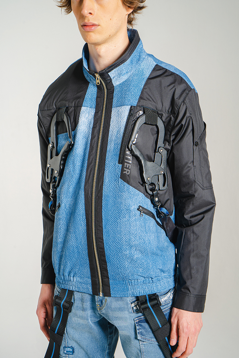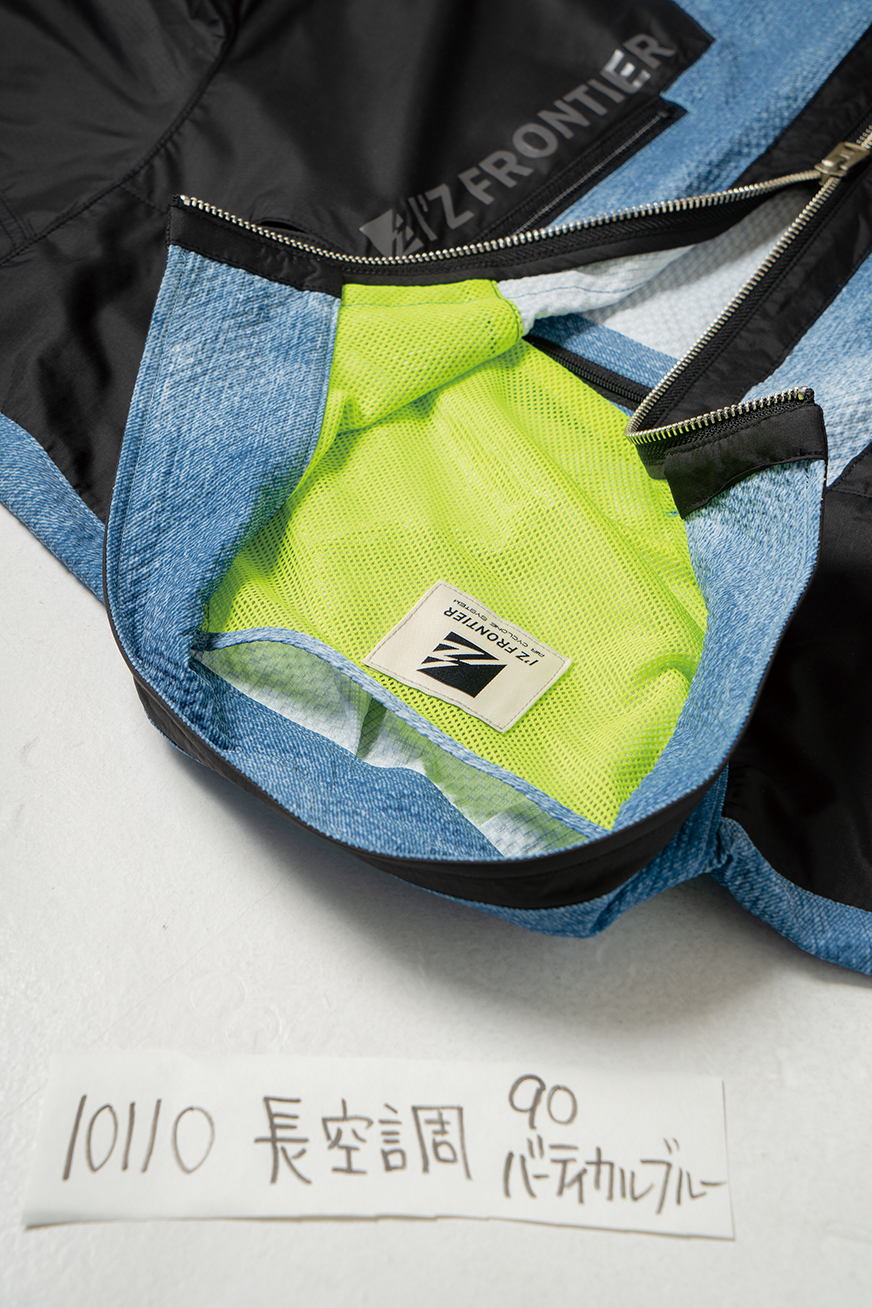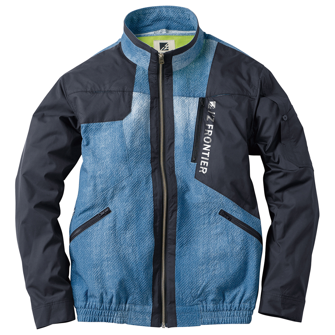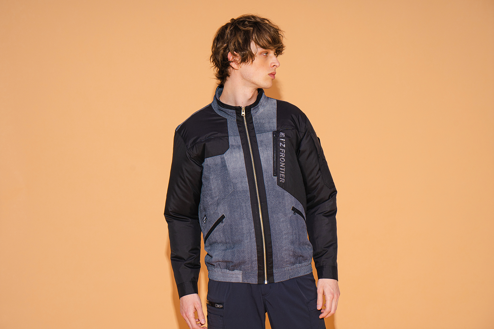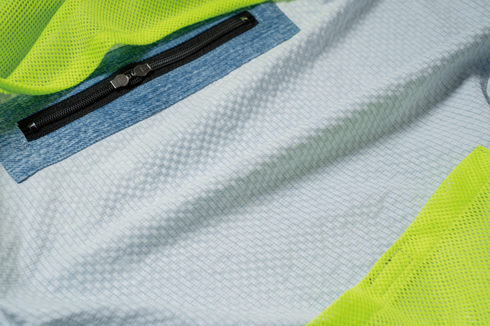 ▶プリント加工を施した凹凸感のあるシアサッカー素材に、 フラットで無機質なミニリップストップ素材を組み合わせ、オリジナリティーあふれるリッチ&ユニークな1品に仕上げ ました。本体素材にはリアルなユーズドデニムプリントをパネル使用。 素材の凹凸感と相成って、 アイズフロンティアならではのリメイクデニム感を演出。 パーツ素材には適 度な密封性と引裂き強度を併せ持つ素材ポリエステルミニリップストップを使用し近未来感をプラス。 ▶本体素材は遮熱率35%を測定。 高い遮熱性能を発揮し衣服内 の温度上昇を軽減します。 ▶背面首ぐり部分の特許取得構造により、 首もとからの安定した風の排出を実現。 ▶カジュアルなルックスも、 フルハーネス対応モデルで ハードワーカー様にも対応可能。▶ 金属ファスナーやドット釦等に国産YKK社製を使用。 細部にまで品質に拘っています。