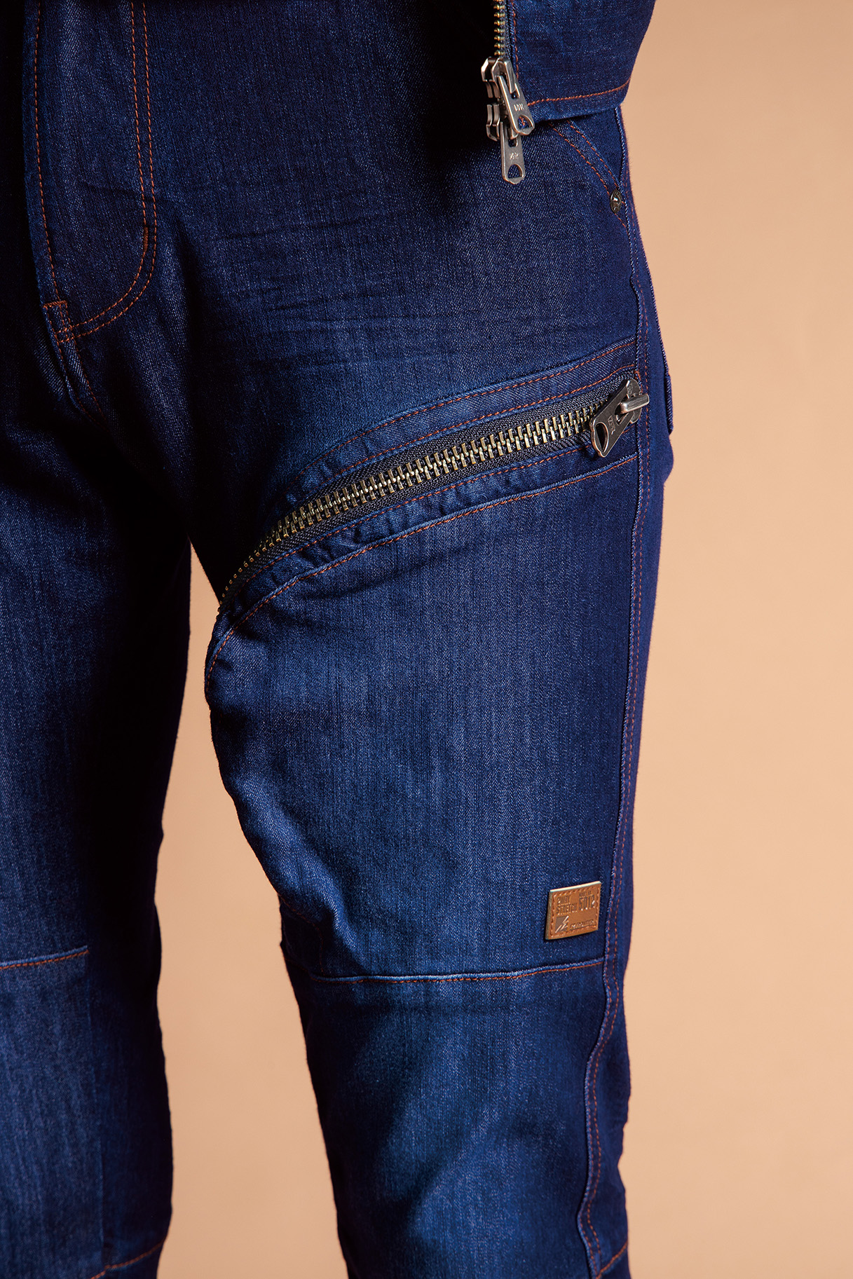 ▶抜群の着心地を誇るタテヨコ(2WAY)ストレッチデニム素材。しかしながらその構造上薄手の生地の実現が困難だった領域にあえて挑戦し、この度9オンスのライトオンス素材にて商品化を実現。2WAYストレッチデニムの新たな可能性が広がります。▶伸長率タテ方向に約27.3%、ヨコ方向に約38.8%(第三者研究 機関測定値)を誇る抜群のストレッチ性能を発揮。 全方向への生地伸長を可能とし快適な動き易さを実現します。▶ライトオンスデニムでありながら、 一般基準約5倍の引裂き強さを有します。▶洗練された3Dカッティングでスタイリッシュなスタイリングと動き易さを両立。▶ライダーステイストをベースとした高級感溢れるデザイン性。気品とワイルド感が絶妙に融合。左脚カーゴポケットの大型ファスナーは圧巻の存在感です。▶金属製のファスナー、ドット釦等は国産YKK社製を使用。細部にまで品質に拘っています。