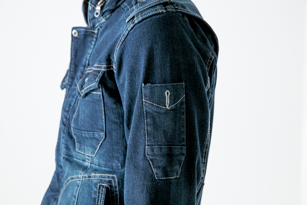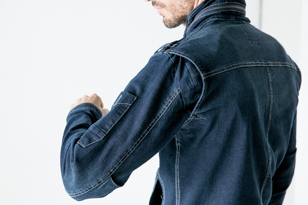 ▶ジャケットの衿はワイヤー入りで自在な着こなしを実現。