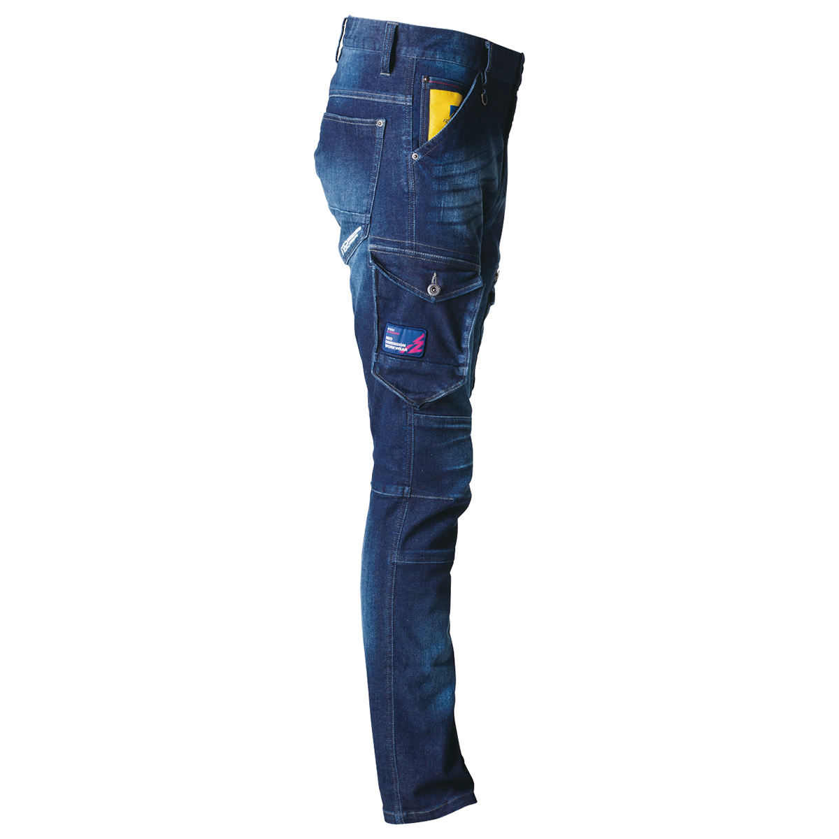 ▶アイズフロンティアの礎を築いたストレッチデニムワークウェア#7250シリーズの後継モデル。全ての機能をヴァージョンアップし、カーゴパンツのシルエットも現代に合わせスタイリッシュにアップデート。▶伸長率ヨコ約48%、伸長回復率1時間後約92%を誇るハイレベルなデニム素材を使用。ストレスのない快適な動き易さと、安定感のあるスタイリッシュなスタイルキープを実現します。▶生地の性能だけでなく、3Dパターンを取り入れ更なる動き易さアップを実現。▶現代のトレンド感を加えたややポップなデザイン性と、ワークウェアとして充分に機能する高い収納性を両立。▶金属製のファスナー、ドット釦等は国産YKK社製を使用。細部にまで品質に拘っています。
