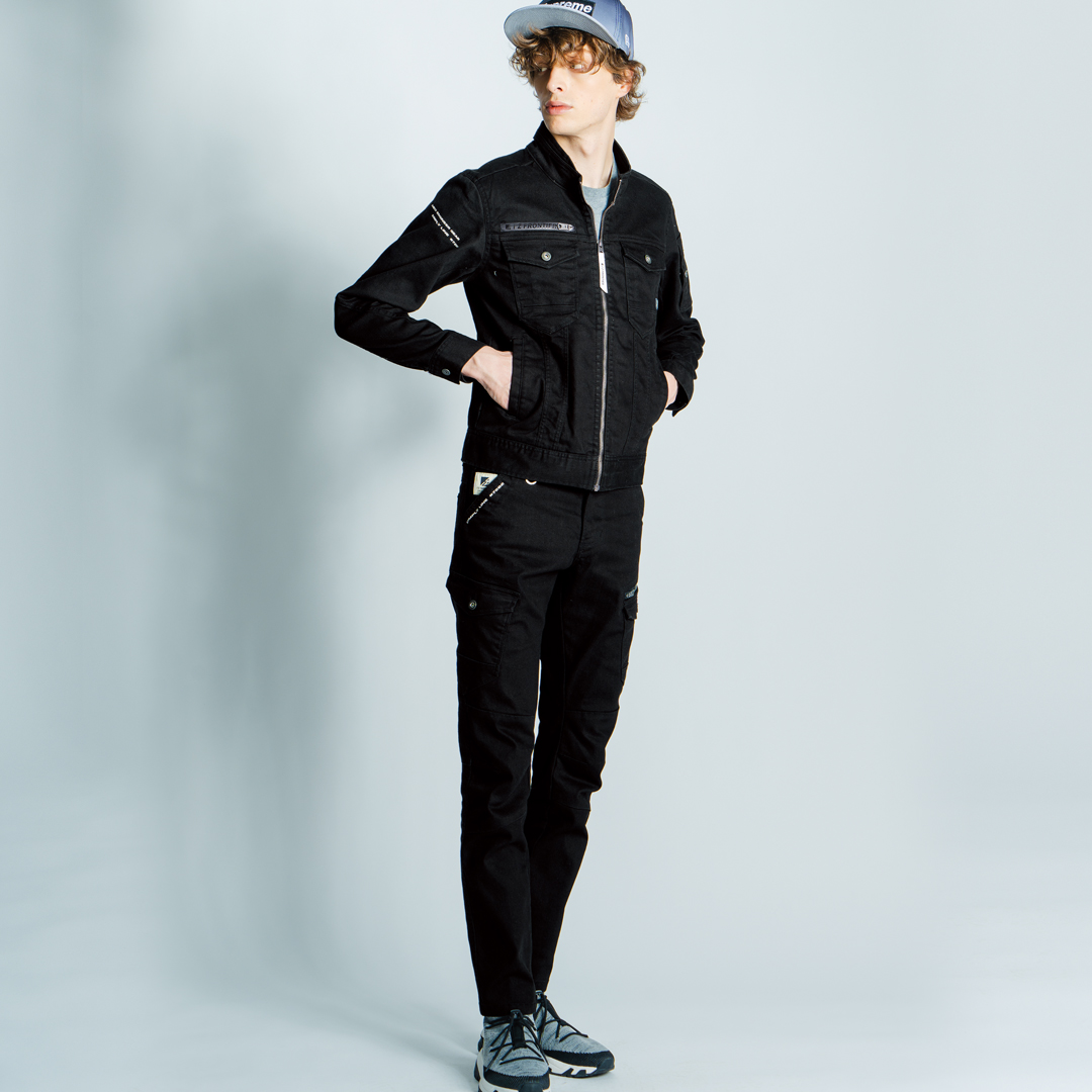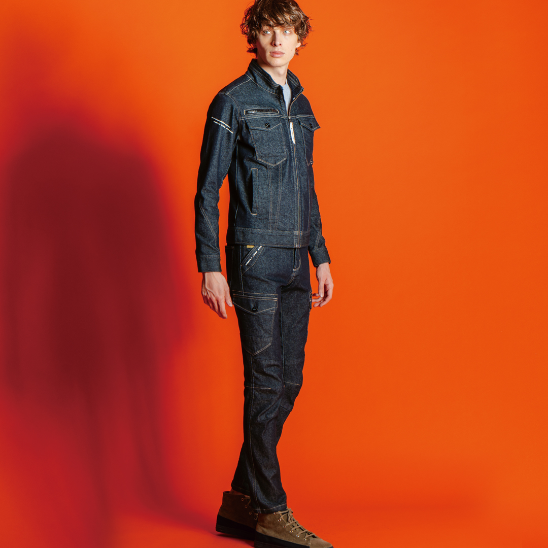▶納入案件も視野に入れ開発された、高いコストパフォーマンスを発揮するスタンダードモデル。シンプルなデザインながらもアイズイズムは随所に注入されています。▶ユニフォームとしての長期着用を可能とする非常にハイレベルな素材ストレッチCVCツイルを採用。綿の風合いと高い形態安定性能を両立。適度なボリューム感と重量感を併せ持ちユニフォームに欠かせない高い耐久性を発揮。同時に優れた発色性が高級感を演出します (56, 59番色は絶妙なヴィンテージ感覚を表現する片サイド染めを採用)。伸長率 (ヨコ) 約20%、伸長回復率(1時間後)約84%の適度なストレッチ性能が快適な作業をサポートします。▶デニム商品には10.3オンスのボリューム感の高いストレッチ素材を使用。伸長率(ヨコ)約56%、伸長回復率(1時間後)約95%を誇る驚異的なハイパワーストレッチ性能を有し、抜群の動きやすさを発揮すると共に、型崩れの少ない優れた形態安定性能を発揮します。▶洗練された3Dカッティングでスタイリッシュなスタイリングと動き易さを両立。▶金属ファスナー、ドット釦等は国YKK社製を使用。細部にまで品質に拘っています。