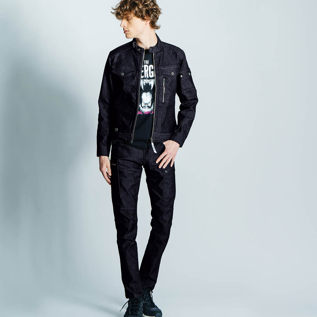 ▶ライダーススタイルの洗練されたデザインが、シャープな着こなしを演出。