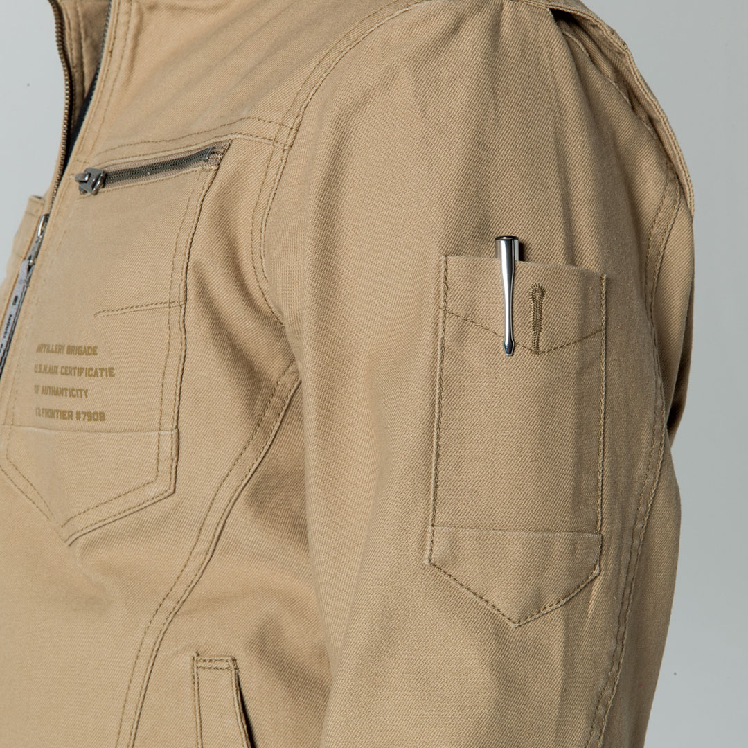 ▶ボリューム感のあるストレッチバックツイルが快適な着心地を実現。▶全ての金属製の資材は国産YKKを使用。細部にまで品質にこだわっています。▶ライダーステイスト溢れる高いデザイン性と汎用性を両立。幅広いシーンに対応します。▶袖は3Dパターンを採用し、更なる動きやすさを追求しています。