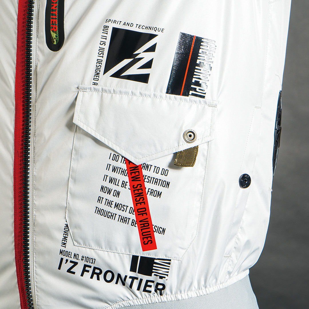 ▶アイズフロンティアが表現するリッチなユーロテイストの世界観が、ワークシーンに異彩を放ちます。ファスナー等、各資材にもこだわり、更なるファッション性アップを実現。