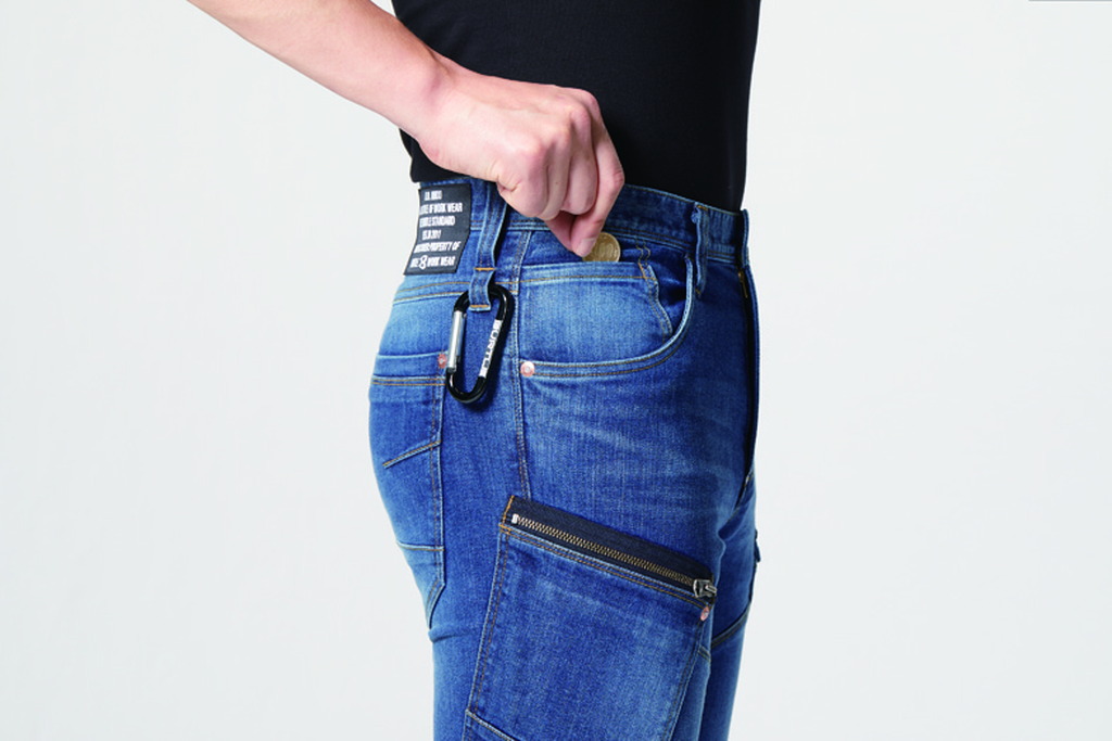 混率/綿56%・ポリエステル29%・ナイロン(CORDURA) 14%・ポリウレタン (LYCRA) 1% (インディゴのみ) 綿63%・ポリエステル21%・ナイロン(CORDURA) 13%・ポリウレタン(LYCRA) 3%