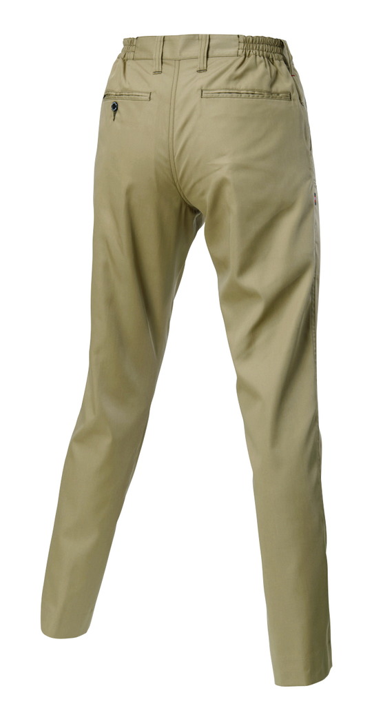 後脇シャーリングゴム仕様、ビス(左ボタン止め)、サイズチップ(左)