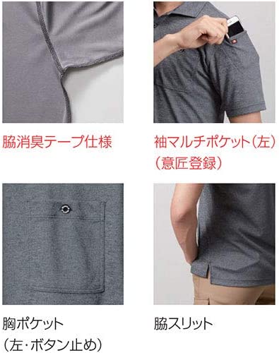 不快な汗のニオイを抑える消臭テープ付き 胸ポケット(ボタン止め)と袖マルチポケット付き