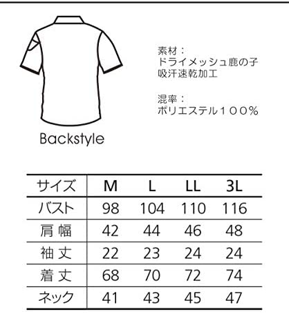 素材/ドライメッシュ鹿の子、 吸汗速乾、消臭、ストレッチ(伸長率40%以上)、 UVカット (UPF50+) 混率/ポリエステル100%男女ユニセックスの着用に対応