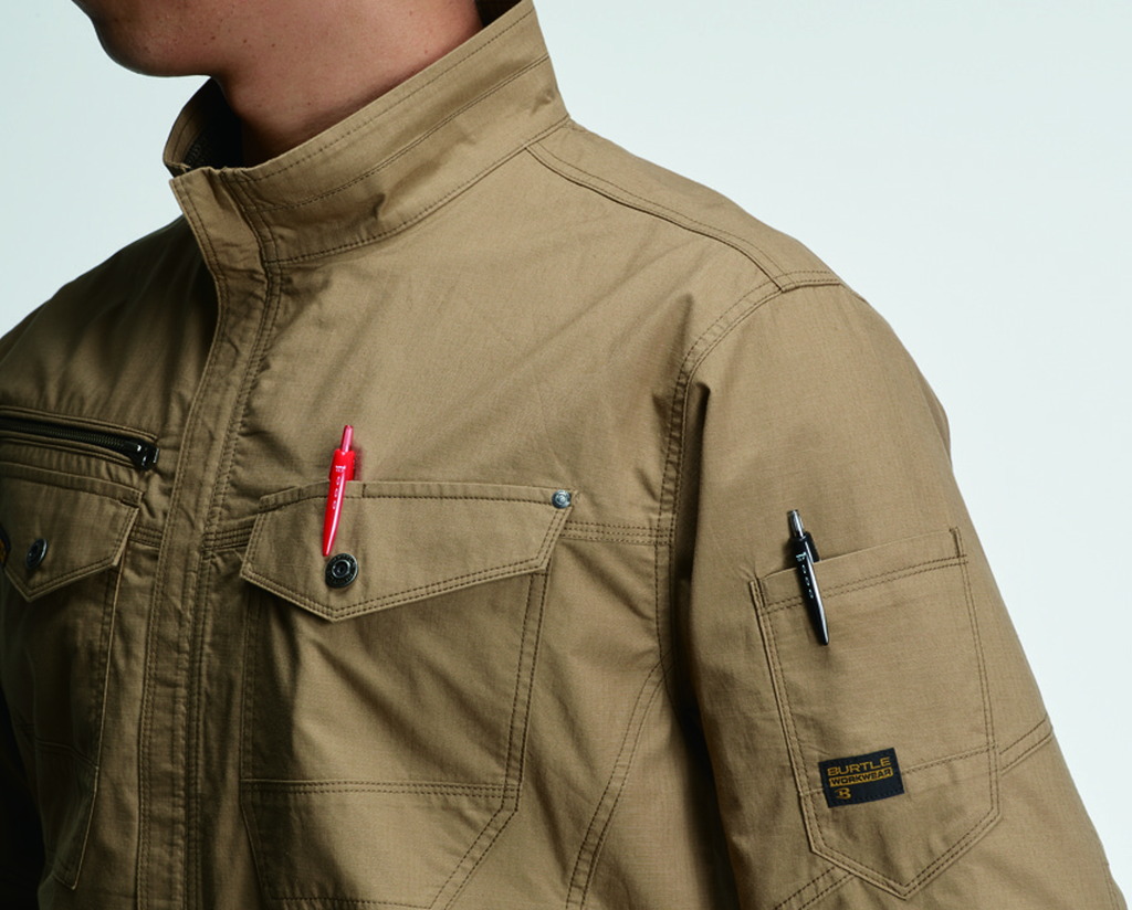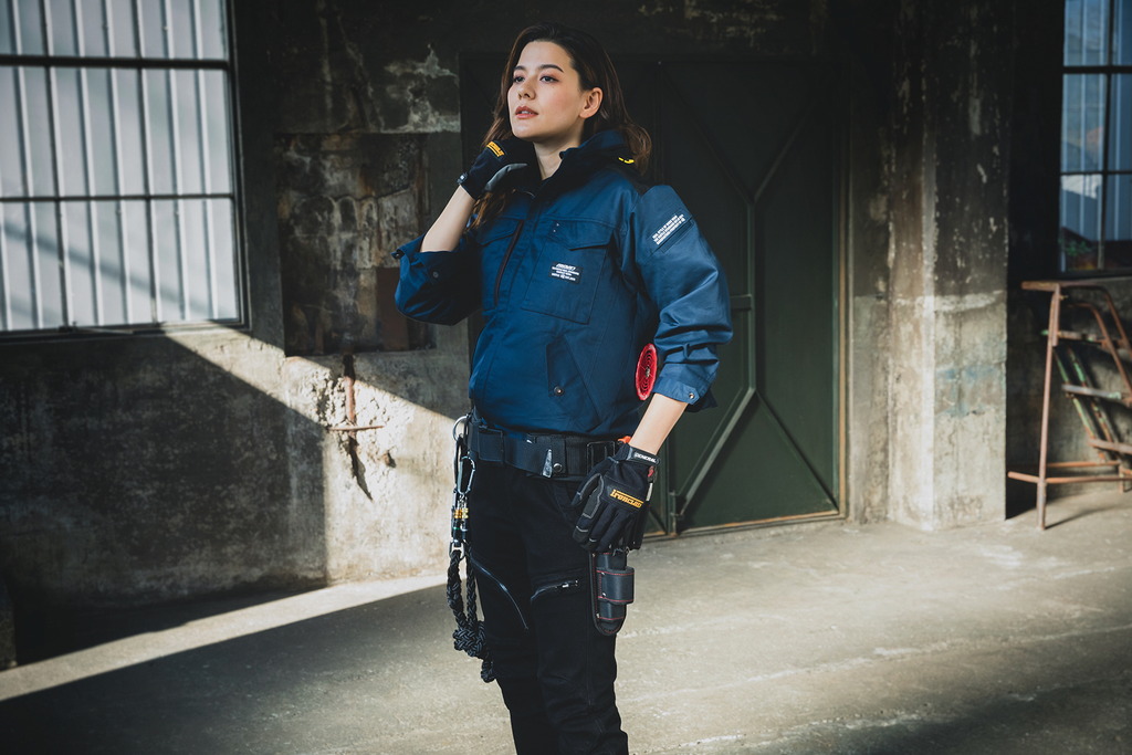 ワークシーンに欠かせない耐久性に優れた綿100%クロスを用い