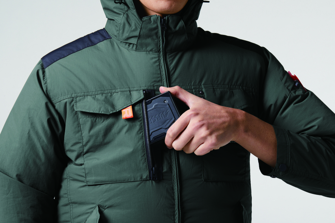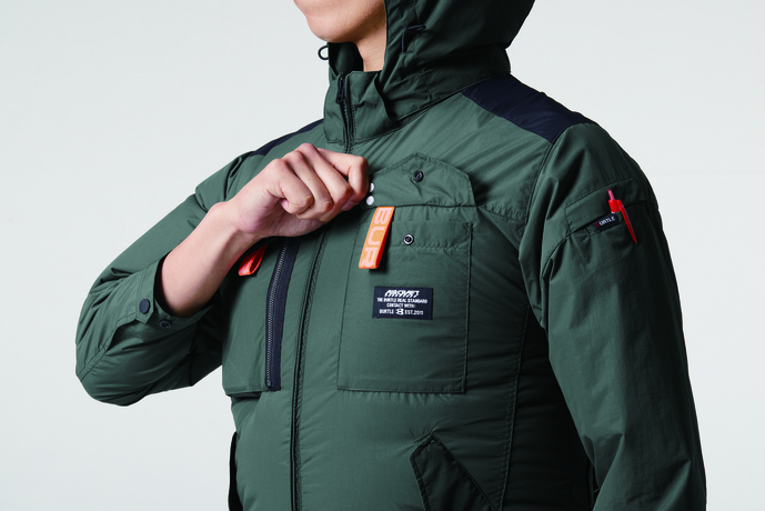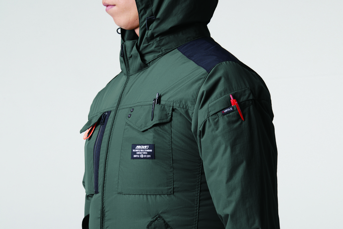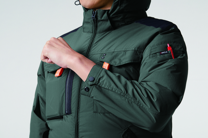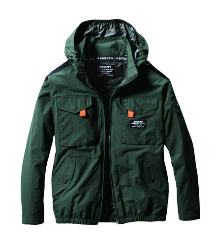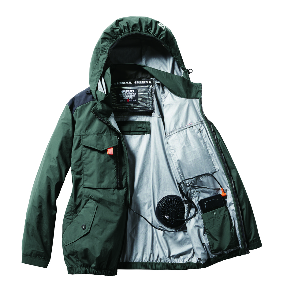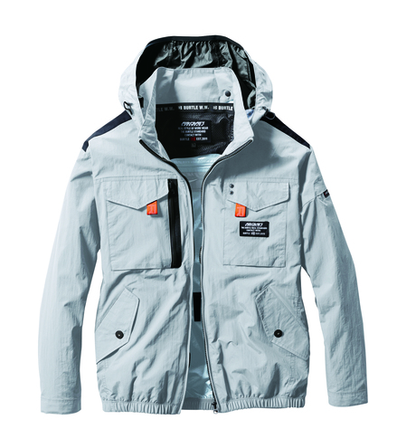 ユニセックス、撥水/防汚★撥水性、耐久性、 軽量を兼備し空気漏れを防ぐ タスランナイロンクロス(AC仕様)★アルミコーティングを施しUVカット、-9度の遮熱効果を確保 (未加工素材比較)★背ヨークに保冷剤を収納可能な通気エアダクトポケットを装備★フックハンガー、ランヤード装着ホールを配備し フルハーネスに完全対応★ヘルメットに対応する大型フードは用途に合わせ着脱可能 ★男女ユニセックスの着用に対応
