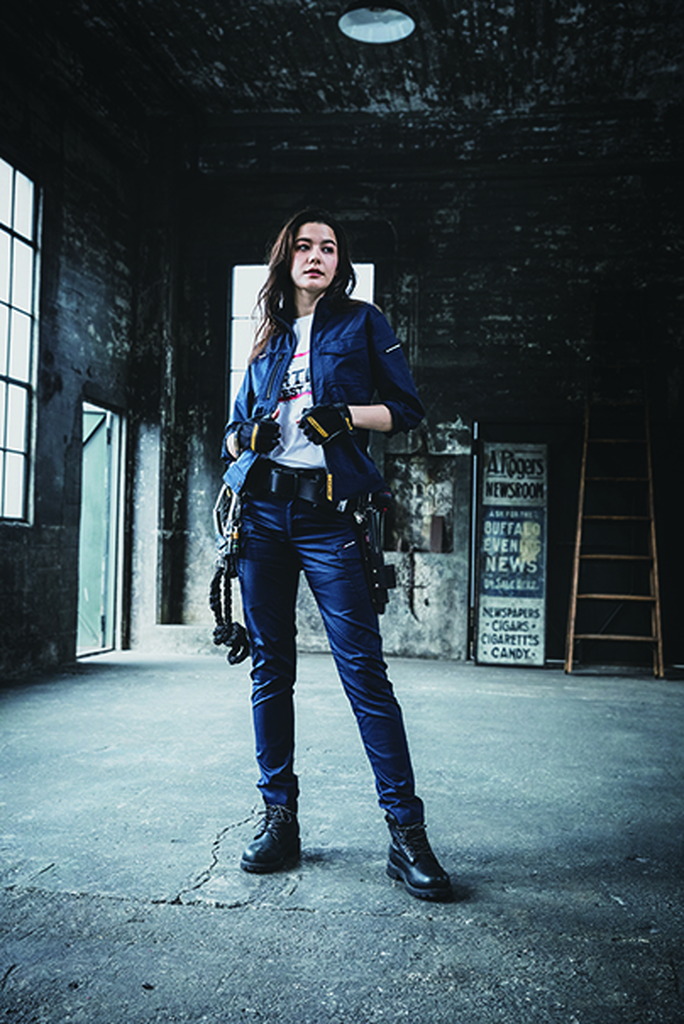 素材/エコストレッチライトツイル (伸長率22%)、 制電ケア設計