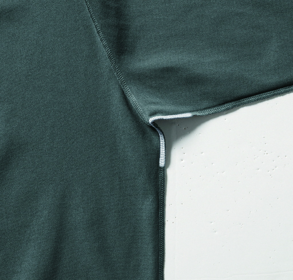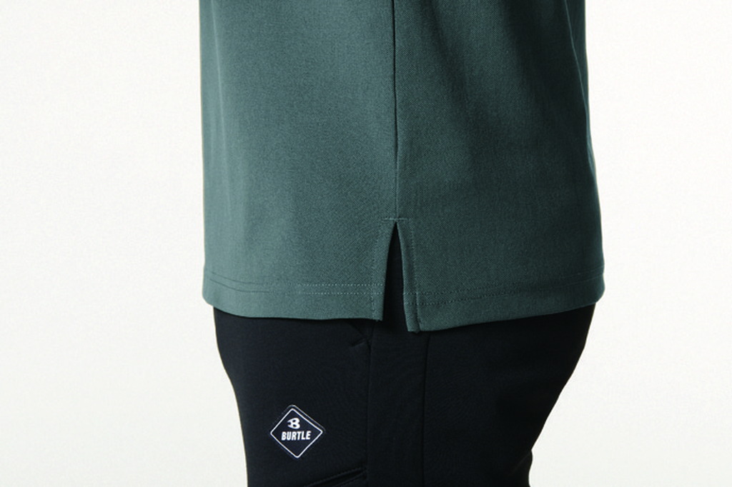 ドライな触感、ストレッチ、 吸水速乾の パフォーマンスを有するポリエステル鹿の子素材 通気性、UVカット、 消臭テープの機能性が 着用時の不快感を軽減