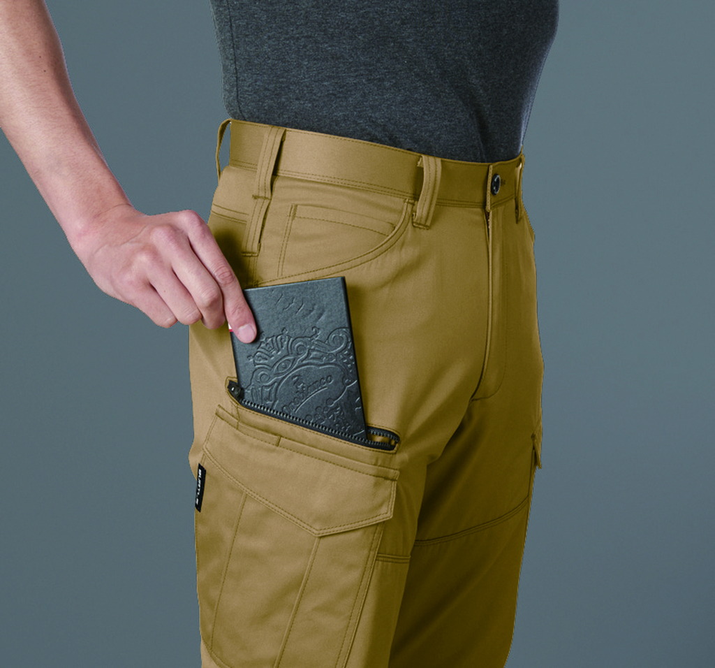 ツインループ(右前・左脇)、コインポケット(右)、ペンさし(右)