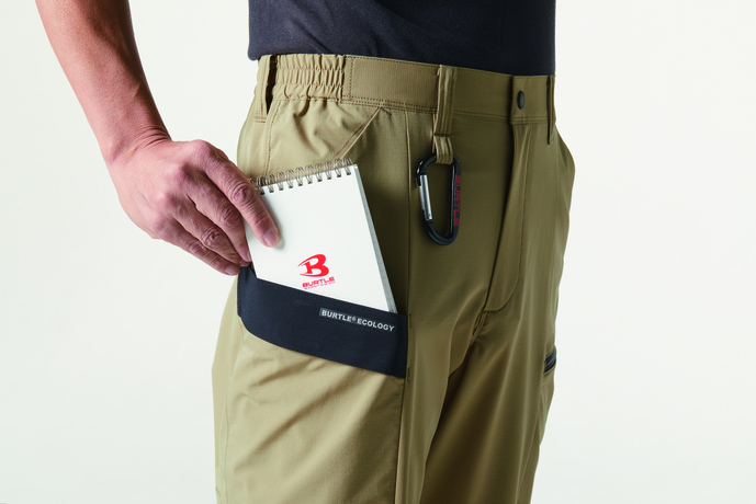 素材/エコ 4WAYストレッチダブルウィーブ (伸長率22%) SOLOTEX® (TEIJIN)、 制電ケア設計、 吸汗速乾性、 ドライタッチ 混率/複合繊維ポリエステル71%・ポリエステル29%(バイオマス合成繊維71%含)