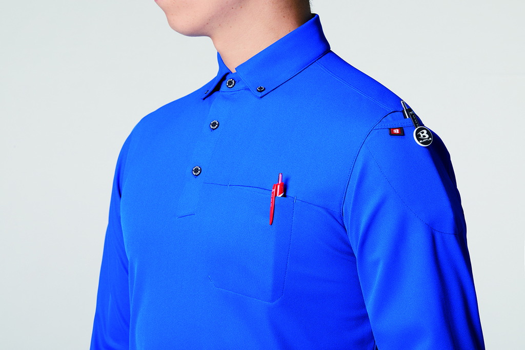 Product Features | ペットボトルリサイクル100%の日本製TEIJINエコトリコット素材を採用 エコロジカルポロシャツは、1枚につき500mlペットボトルを約8本使用 吸汗速乾 UVカット、ストレッチを特性とする高機能トリコット素材 優れた帯電防止性を備えるJIS T8118適合プロダクト フォーマルなビジネスシーンに適応するボタンダウン仕様 不快な汗のニオイを抑える消臭テープ付き