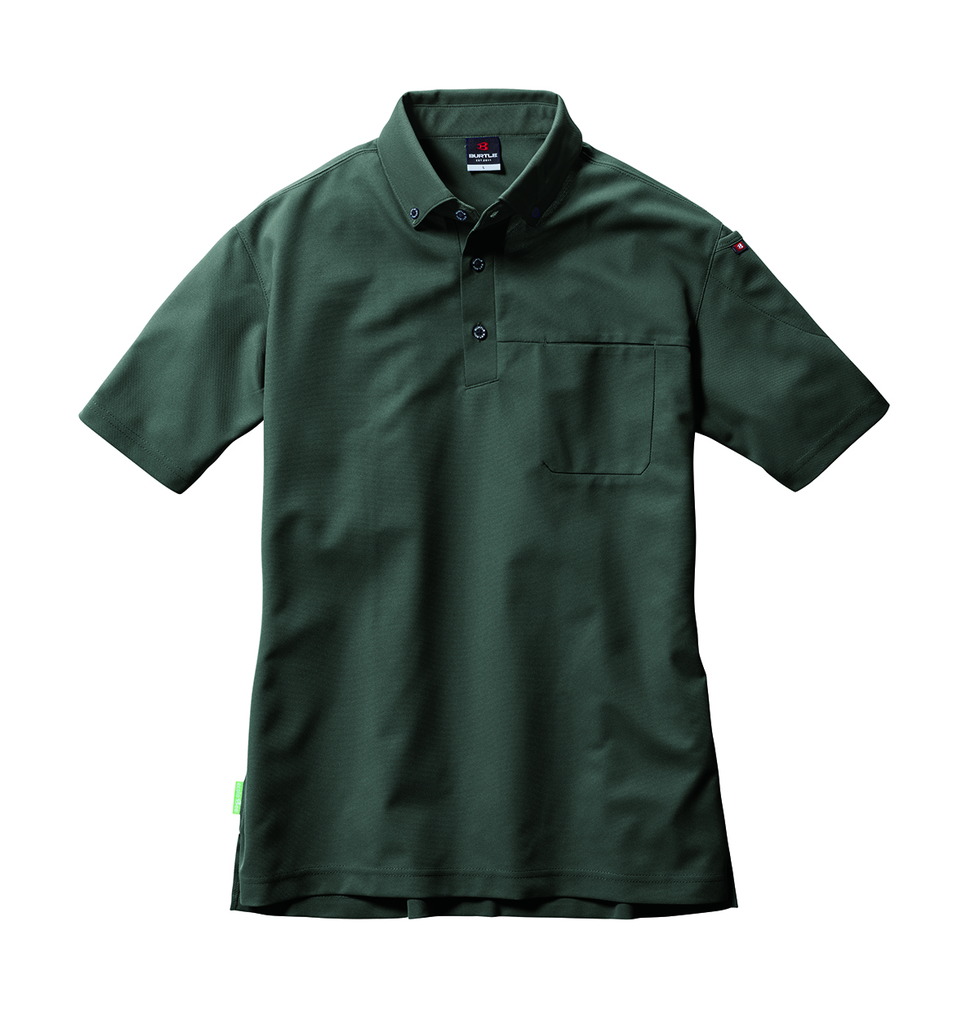 Product Features | ペットボトルリサイクル100%の日本製TEIJINエコトリコット素材を採用 エコロジカルポロシャツは、1枚につき500mlペットボトルを約8本使用 吸汗速乾 UVカット、ストレッチを特性とする高機能トリコット素材 優れた帯電防止性を備えるJIS T8118適合プロダクト フォーマルなビジネスシーンに適応するボタンダウン仕様 不快な汗のニオイを抑える消臭テープ付き