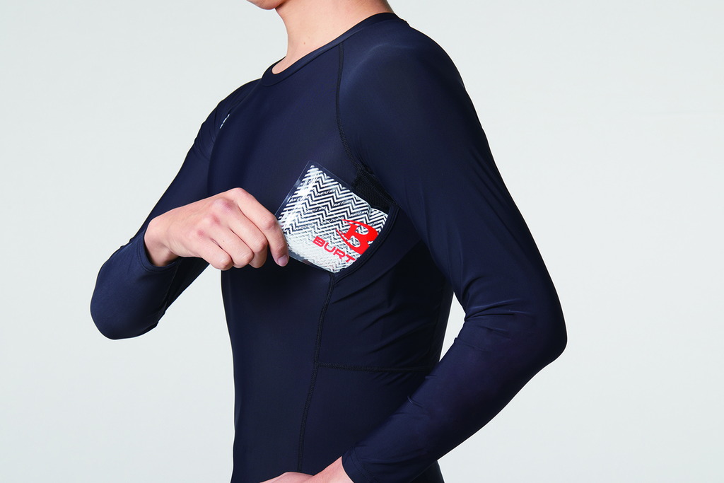 ★接触冷感のポテンシャルを高めるキシリトールプリントを後身頃に装着 ★ フラットロックシーム縫製と消臭テープの機能性が着用時の不快感を軽減 ★着用時セルフで収納可能なアイスパックポケットを背中、両脇に3ヶ所搭載