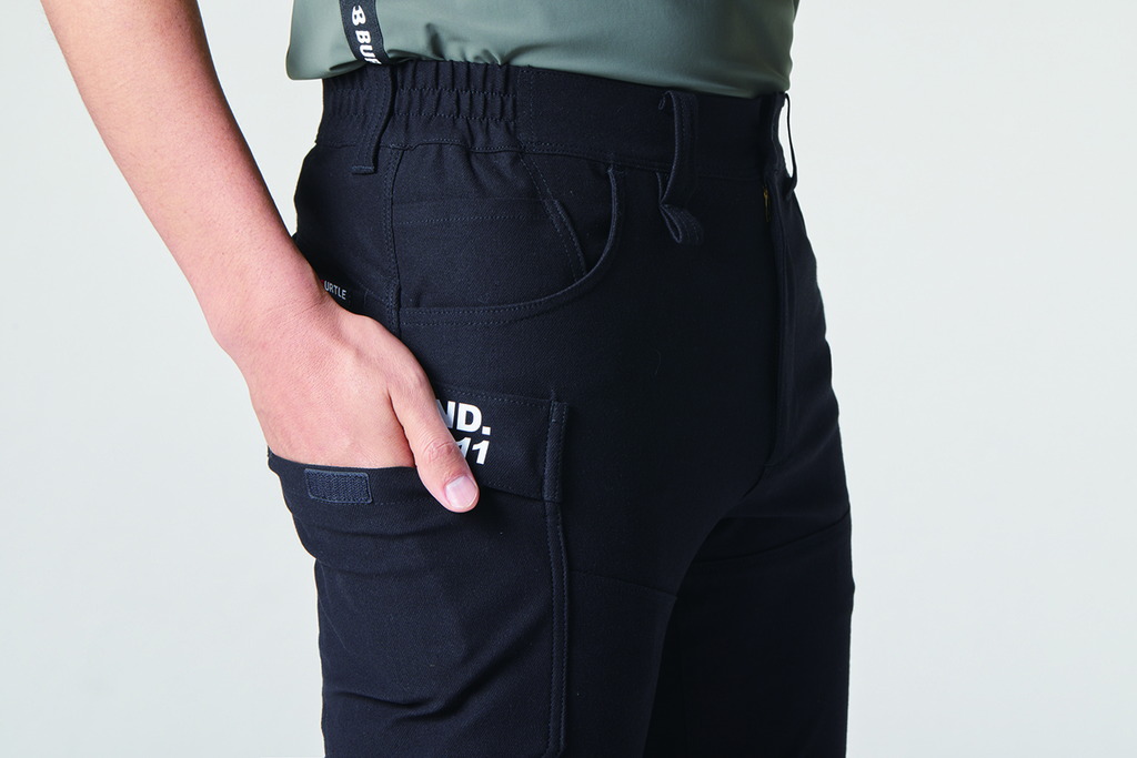 素材/4WAYストレッチニット(伸長率40%以上)、 吸汗速乾、通気性、 製品洗い、ブラスト加工 (45. インディゴのみ)