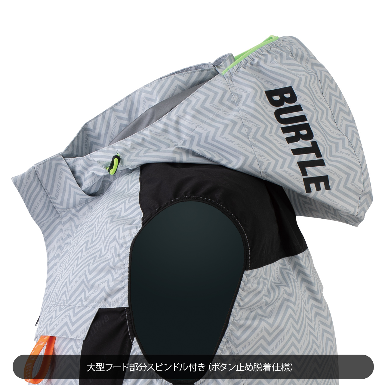 - ヘルメットに対応する大型フードは用途に合わせ脱着可能
