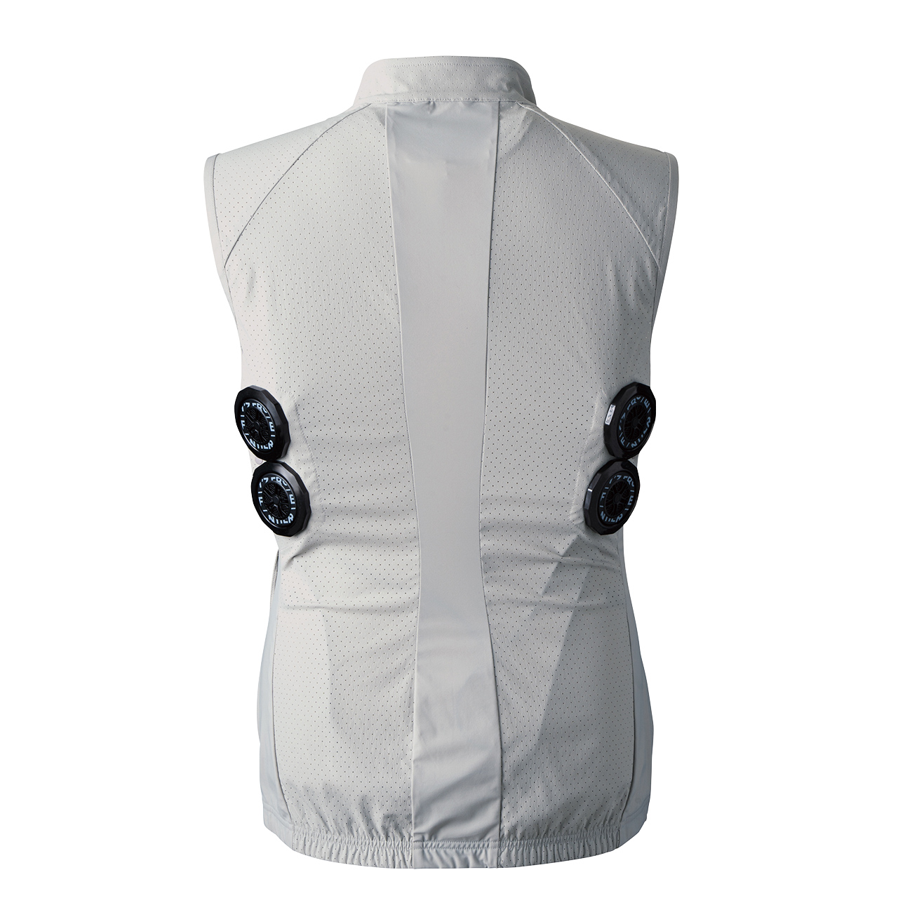 ▲背面両脇の計4ヶ所に直径5cmのペルチェデバイスが装着可能なニュータイプ冷却ウェア。
