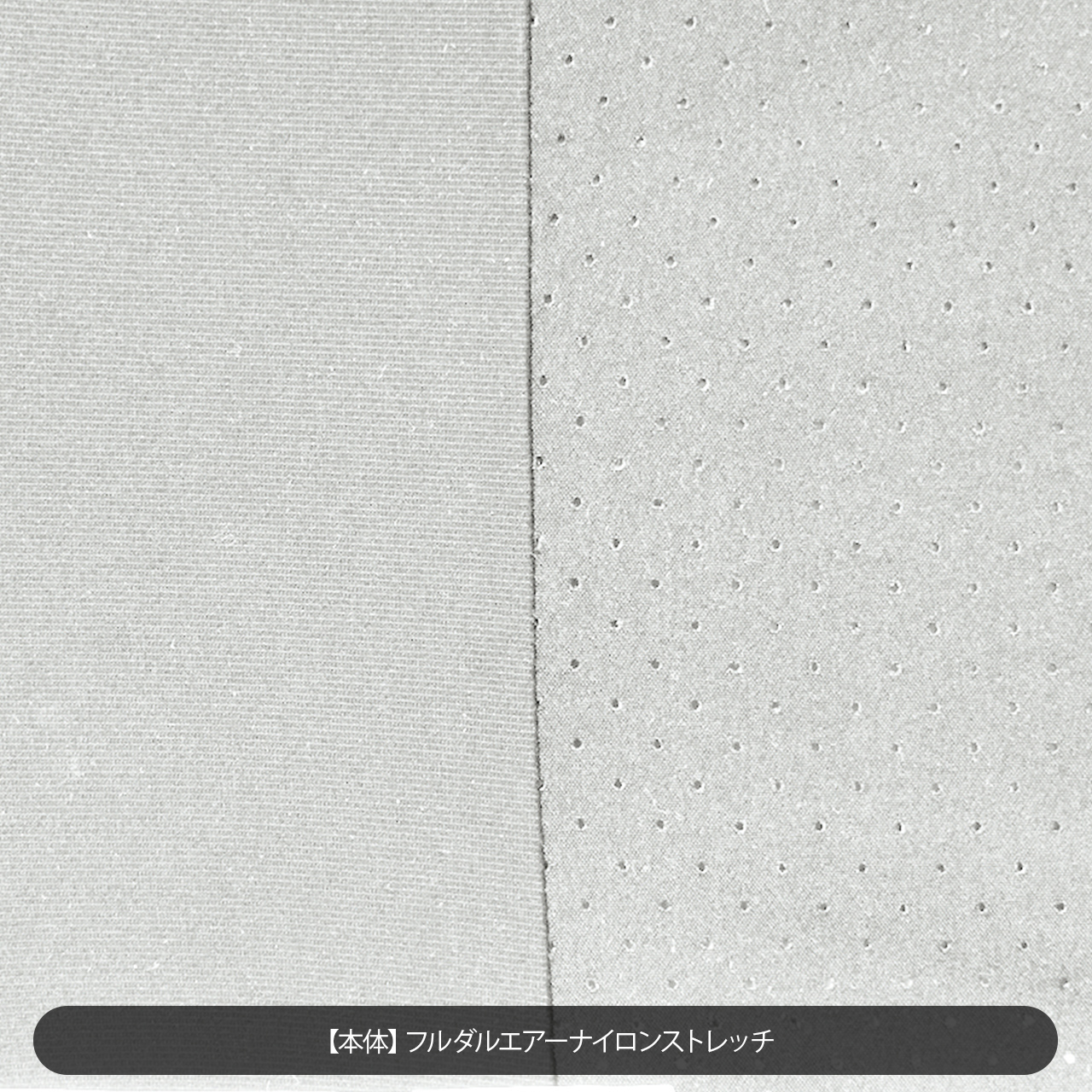 ▲高性能なナイロンサマーストレッチに特殊なレーザー加工技術を駆使し通気孔を発現させ、
