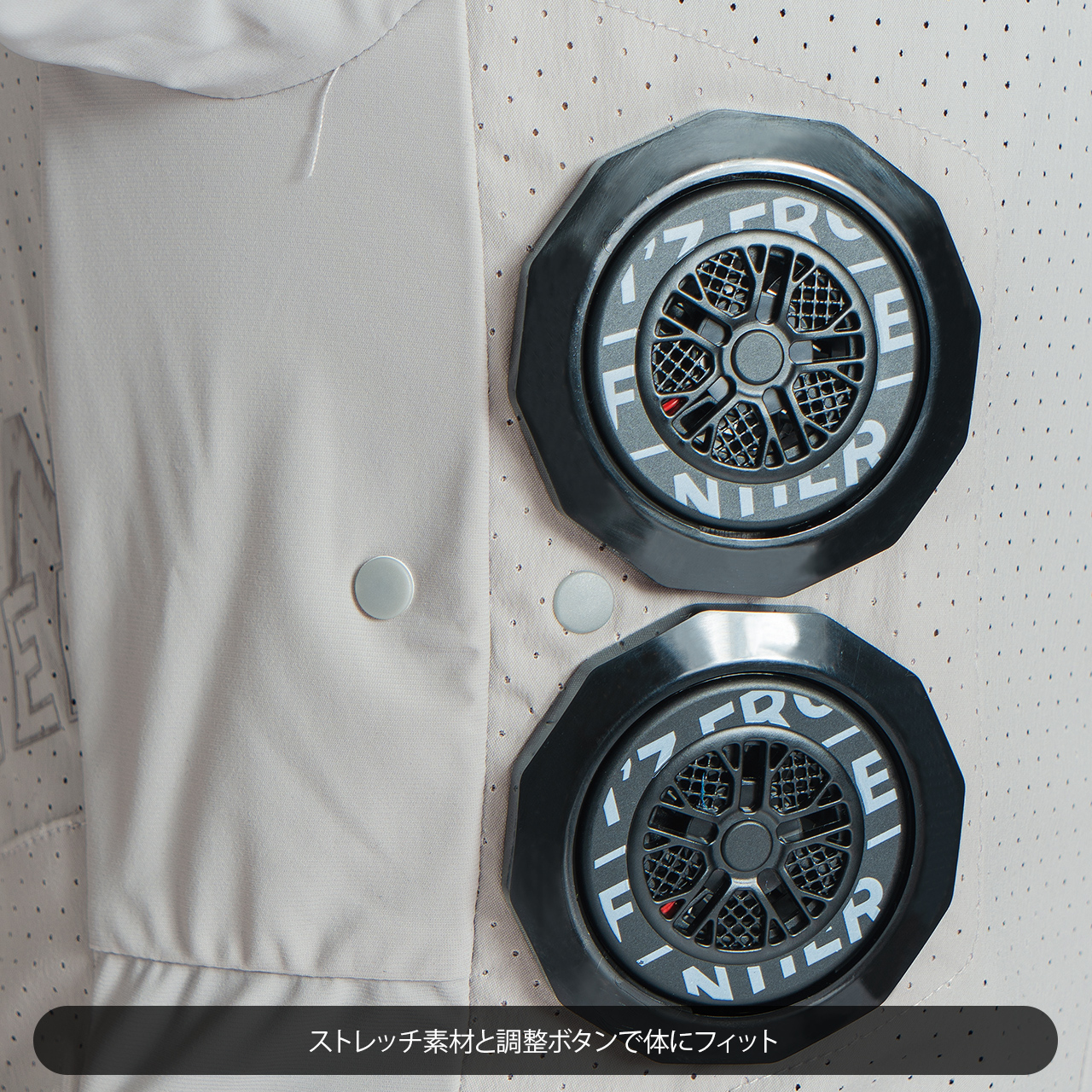 ▲脇部分には開囲マイナス4cmのアジャスターポタンを搭載し、よりフィット感を高めます。