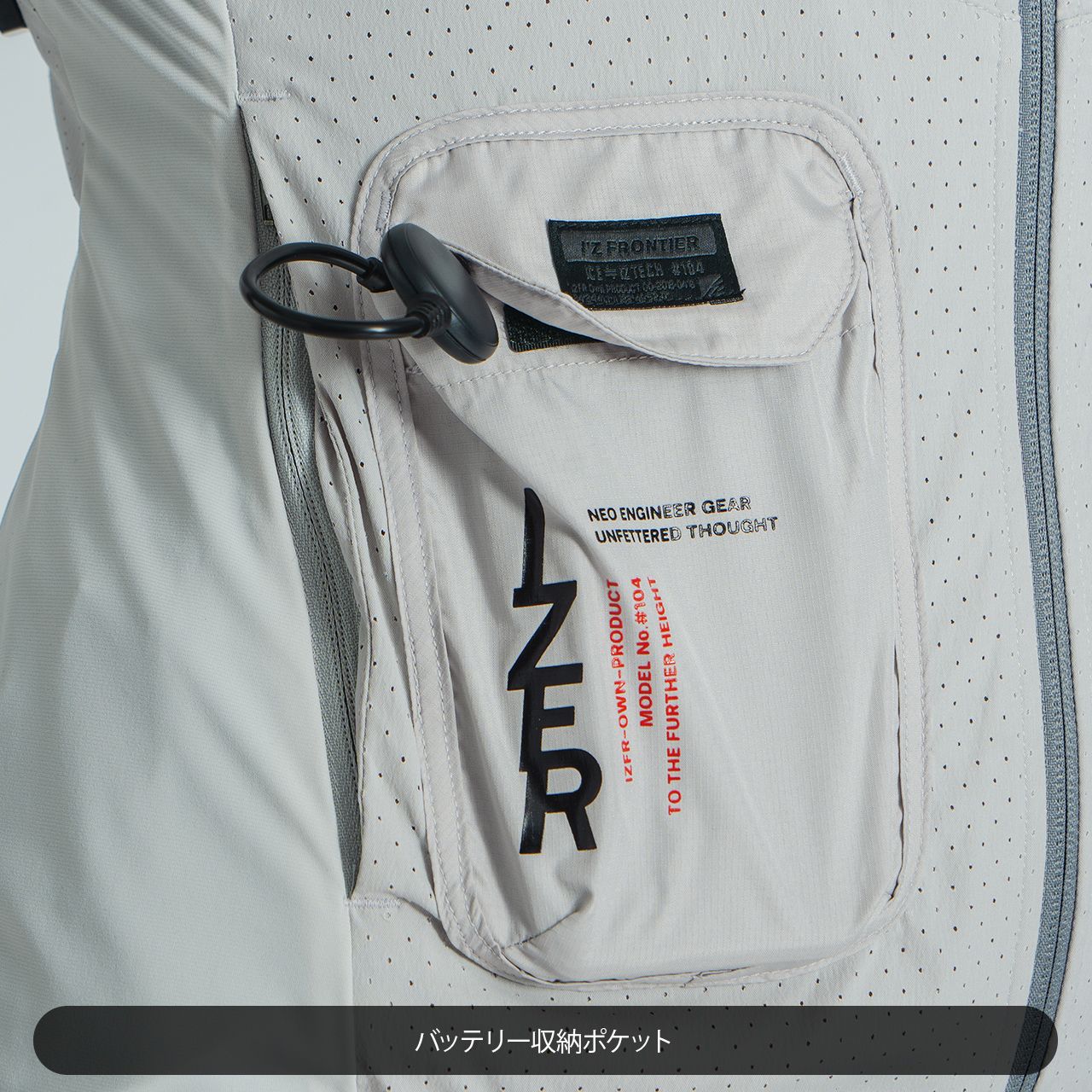 ▲冷却機能を損なう事なく、ウェアの上からフルハーネス装着可能。