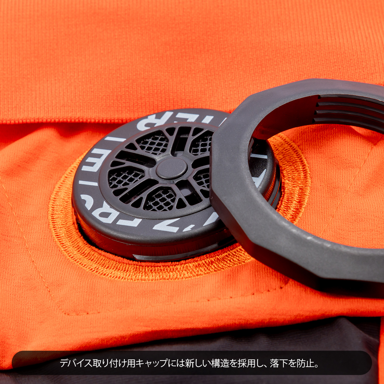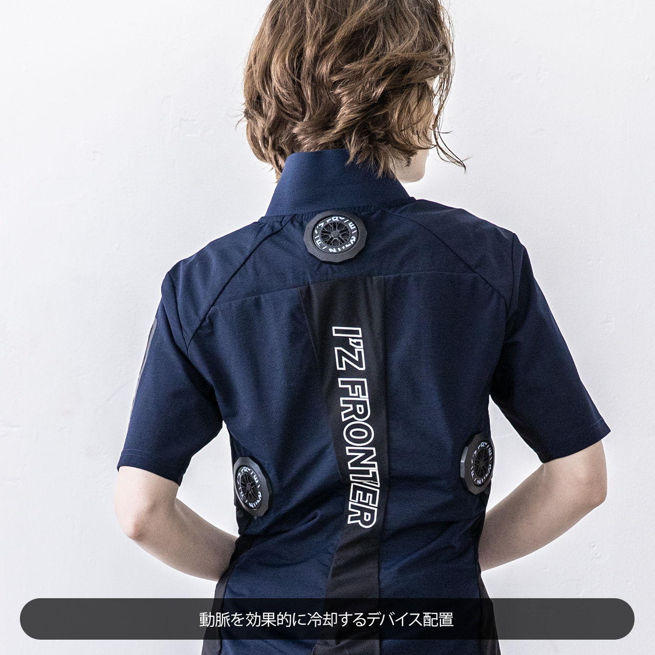 デバイス取り付け用キャップには新しい構造を採用し、落下を防止。デバイスの形状は特許取得済みで、冷却温度のスペックを向上させました。また、I'Z FRONTIERのペルチェデバイス対応コンプレッションウェア#215シリーズと組み合わせることで、さらに冷感性がアップします。ただし、素肌への直接着用は避けてください。