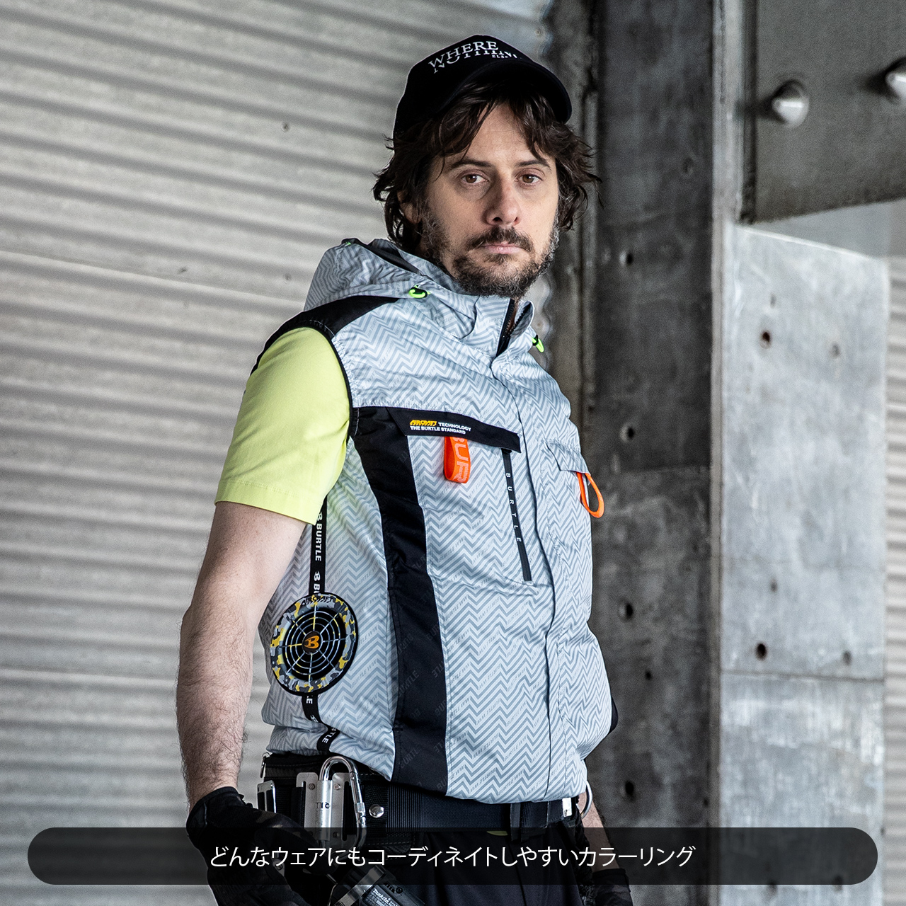 過酷な作業環境でも快適に作業を続けられるよう設計されています。ファンユニットは防水設計仕様で水洗いに対応しており、現場で汚れた際も簡単にメンテナンスが可能です。また、最大毎秒100リットルの風量を発揮する耐久性に優れたブラシレスモーターファンを搭載しているため、長時間にわたり強力な風を提供し、暑さや湿気から身を守ります。重量は2個で228gと軽量で、長時間装着しても負担になりません。